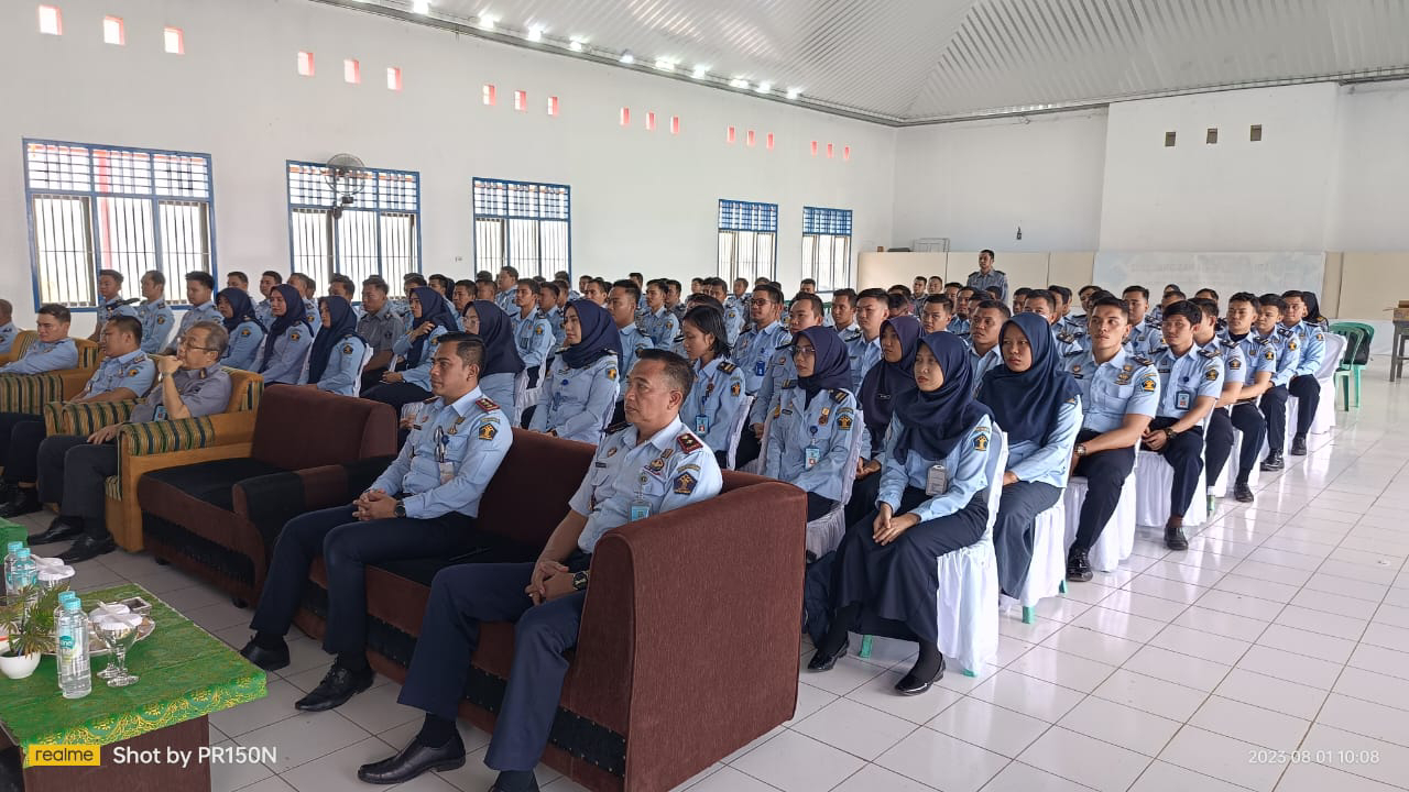 Kepala Rupbasan Kelas II Kotabumi mengikuti Penguatan Kegiatan Kapasitas dan Wawasan Petugas Pemasyarakatan dan Keimigrasian PNS Angkatan 2017,2018,2019,2020,2021,dan 2022 oleh Kepala Kantor Wilayah Kementrian Hukum dan HAM Lampung di Aula Rutan Kelas II Kotabumi